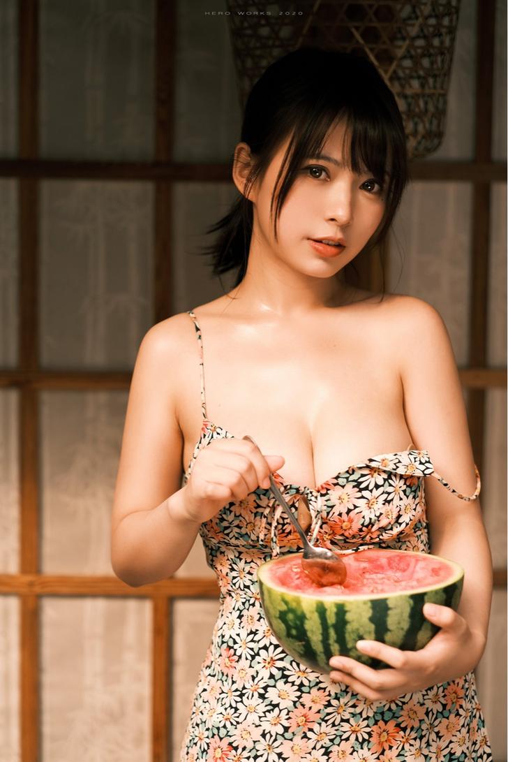 这么热的天气,吃西瓜消暑再好不过了,国产Coser肃雨雨雨的吃西瓜套图,却让人越看欲火越来越高涨,手上捧一颗,加上胸前两颗巨乳,根本就是一次吃三颗的节奏,这样的跨次元身材会不会太犯规了?