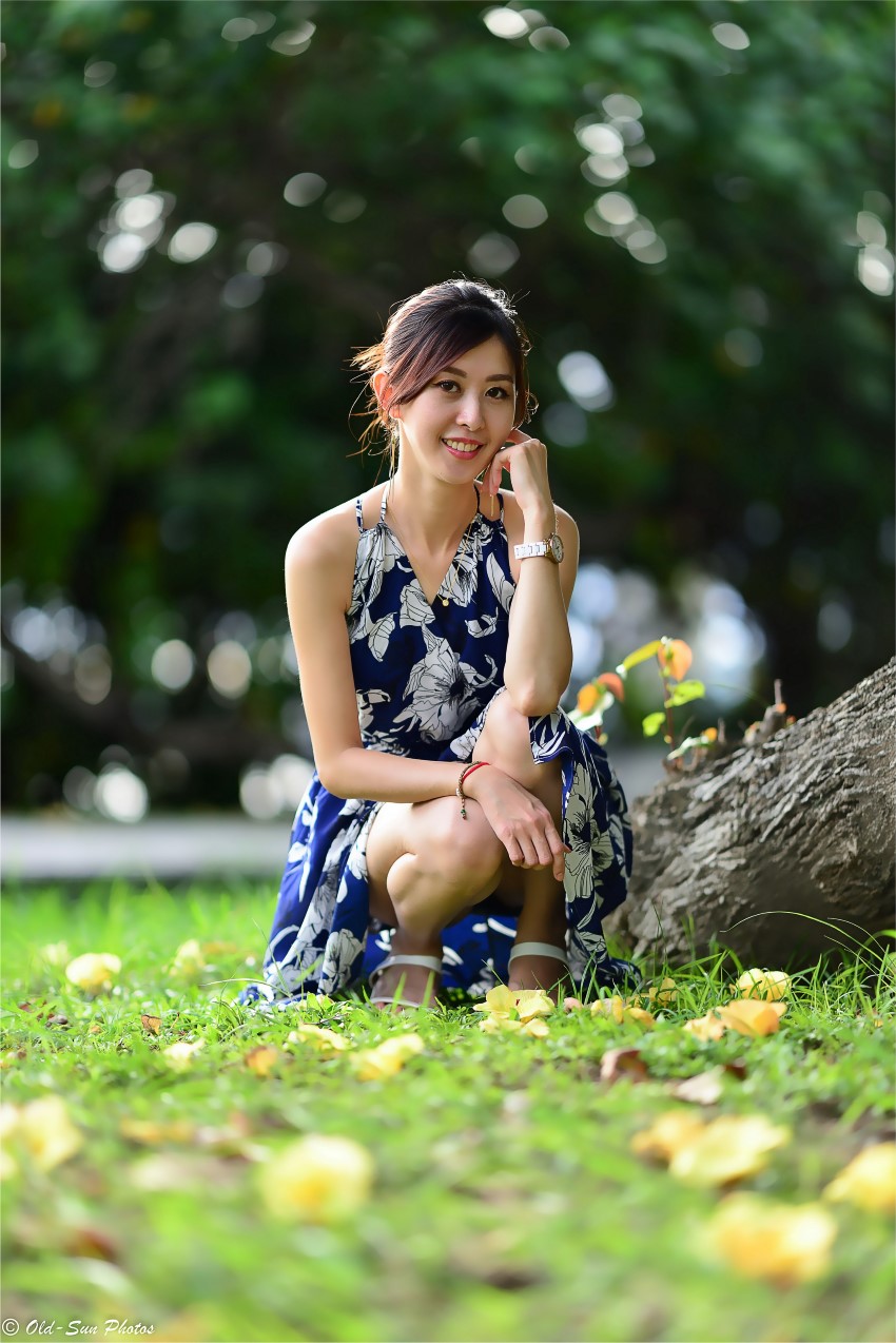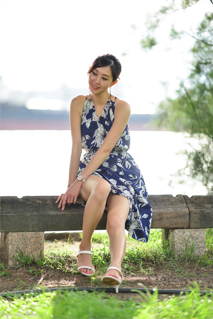 漂亮的蓝底白花裙子
